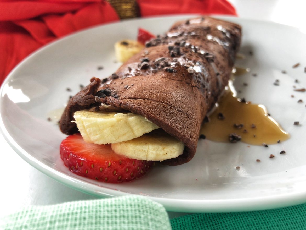 I have been running into some of you who have tried out some of my recipes. How exciting is that! I hope you try this one. I couldn’t find what looked like a good crepe recipe in my recipe books so I reached out to Terri from www.eatplantbased.com . I met her on the cruise and she said she didn’t have a recipe herself, but to try out the www.thevegan8.com website. (A blog dedicated to recipes with 8 ingredients and less.) Et Voila! Chocolate Crepe recipe!