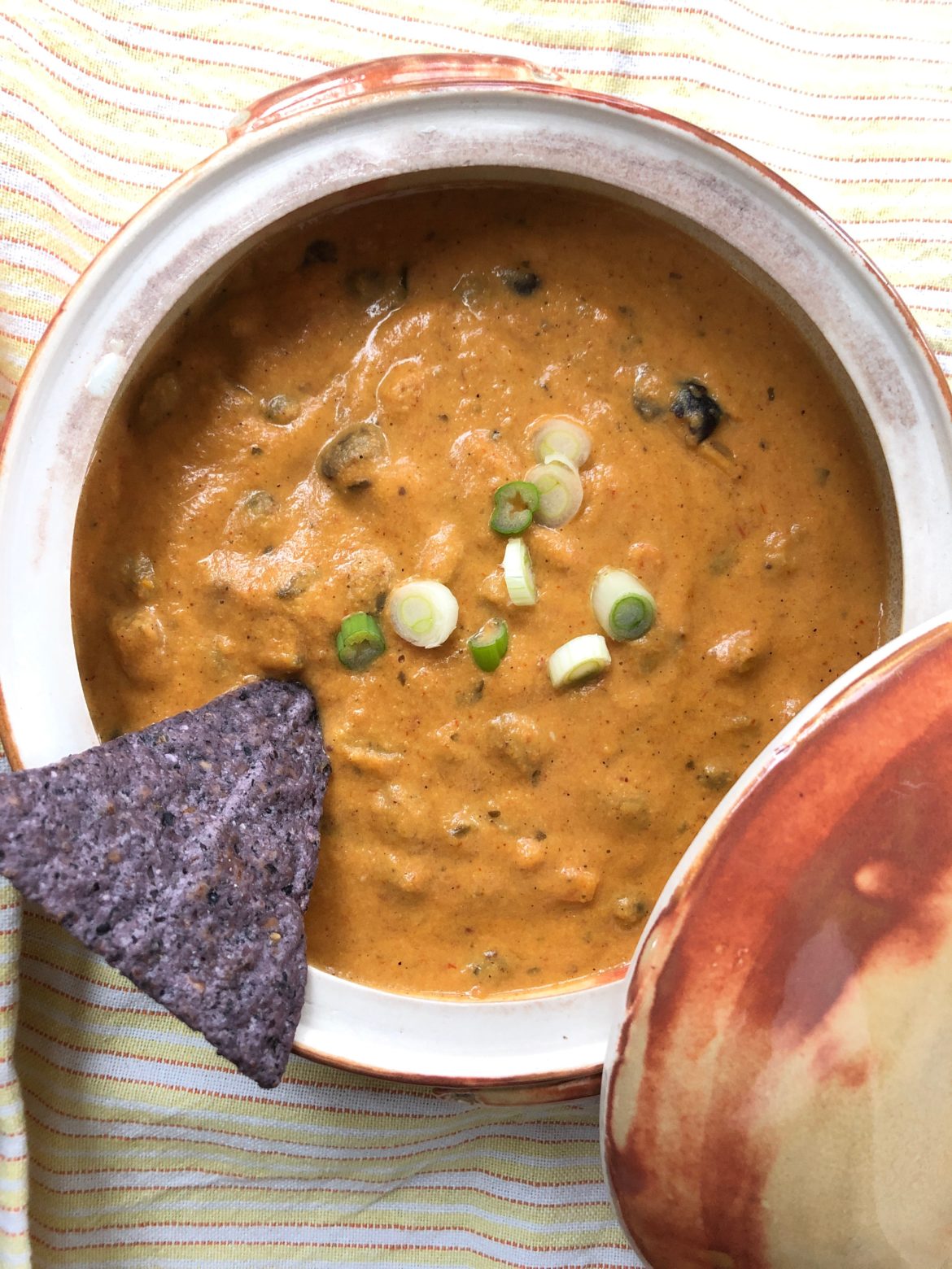 I digress… this appetizer could be accompanied by bread, nacho chips, whole grain crackers or vegetables. Any way you dip it, it’s yummy! I like it best warmed up.
